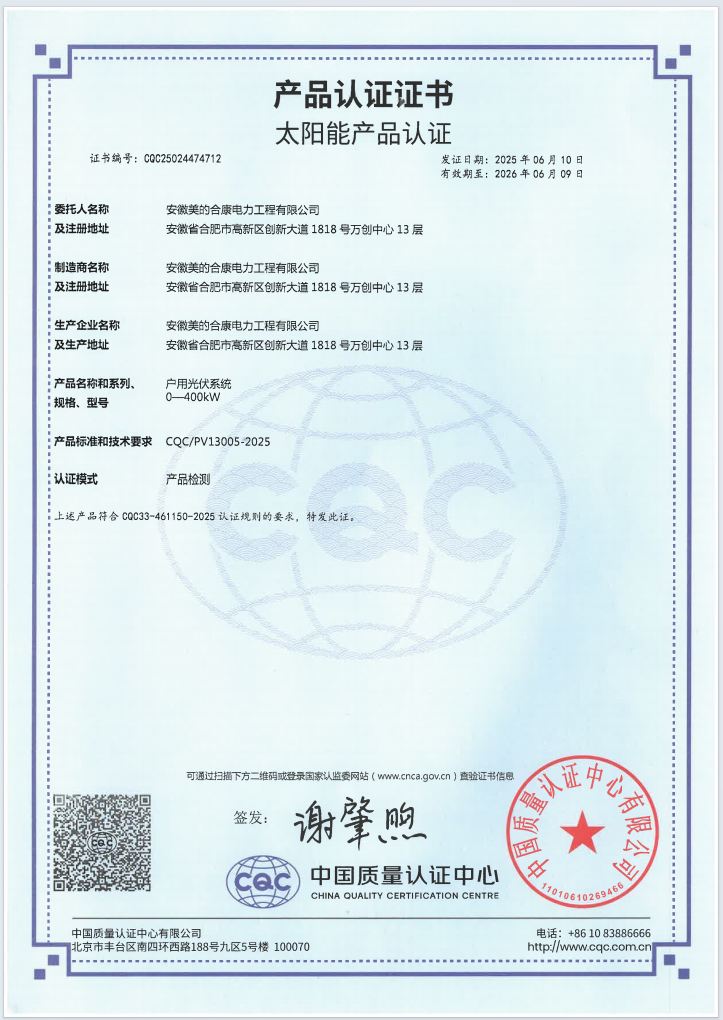 户用光伏系统CQC认证55.38kW-CQC25024480990
